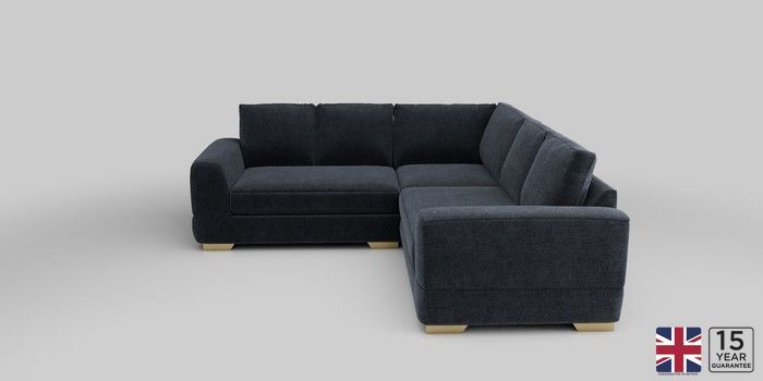 6.12.1 Buy Clayton Medium Corner Sofa - Universal Boucle Chenille Dark Slate Blue Large Square Angle - Brushed Brass from the Next UK online shop Click here to use our accessible website