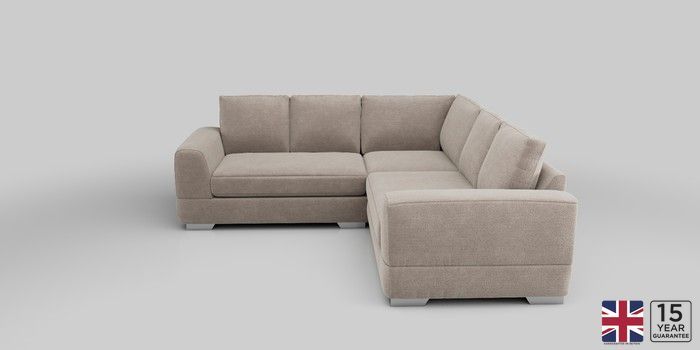 6.12.1 Buy Clayton Medium Corner Sofa - Universal Boucle Chenille Light Natural Large Square Angle - Chrome Metal from the Next UK online shop Click here to use our accessible website