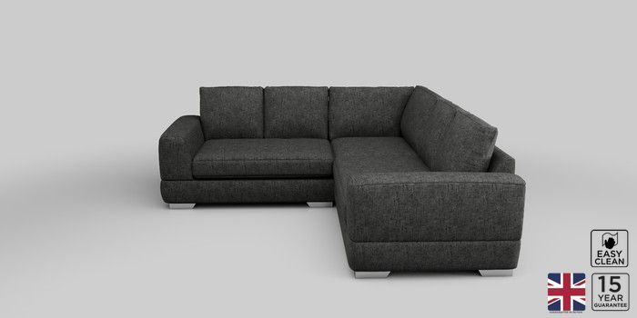 6.12.1 Buy Clayton Medium Corner Sofa - Universal Boucle Weave Easy Clean Charcoal Grey Large Square Angle - Chrome Metal from the Next UK online shop Click here to use our accessible website