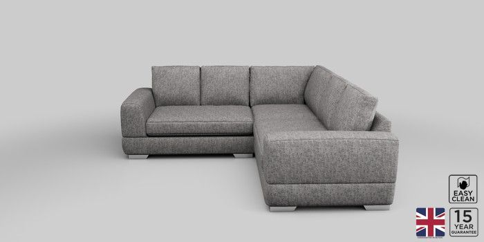 6.12.1 Buy Clayton Medium Corner Sofa - Universal Chunky Boucle Easy Clean Light Grey Large Square Angle - Chrome Metal from the Next UK online shop Click here to use our accessible website