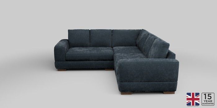 6.12.1 Buy Clayton Medium Corner Sofa - Universal Distressed Velour Midnight Blue Large Square Angle - Mid from the Next UK online shop Click here to use our accessible website