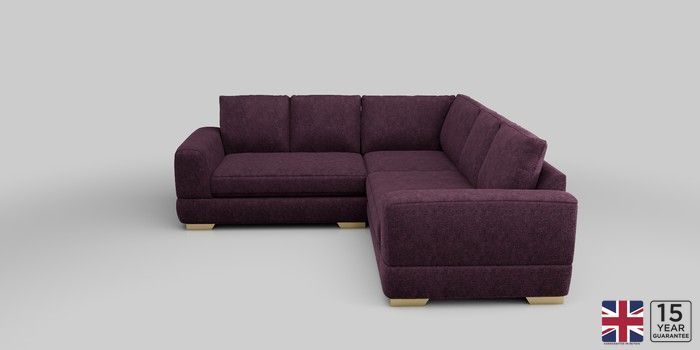 6.12.1 Buy Clayton Medium Corner Sofa - Universal Plush Chenille Dark Plum Purple Large Square Angle - Brushed Brass from the Next UK online shop Click here to use our accessible website