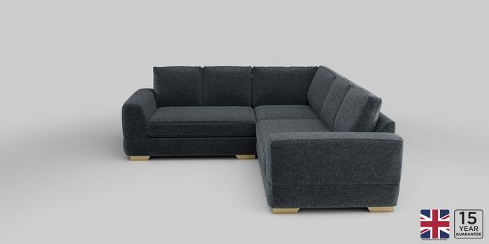 6.12.1 Buy Clayton Medium Corner Sofa - Universal Plush Chenille Slate Blue Large Square Angle - Brushed Brass from the Next UK online shop Click here to use our accessible website