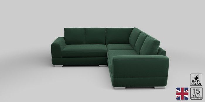 6.12.1 Buy Clayton Medium Corner Sofa - Universal Plush Velvet Easy Clean Bottle Green Large Square Angle - Chrome Metal from the Next UK online shop Click here to use our accessible website