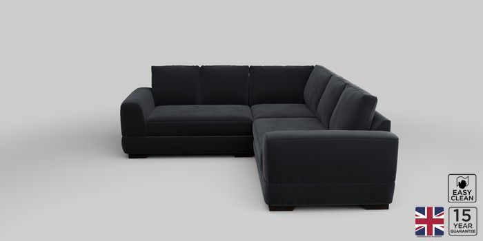 6.12.1 Buy Clayton Medium Corner Sofa - Universal Plush Velvet Easy Clean Charcoal Grey Large Square Angle - Dark from the Next UK online shop Click here to use our accessible website