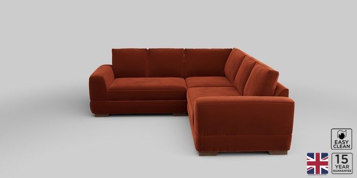6.12.1 Buy Clayton Medium Corner Sofa - Universal Plush Velvet Easy Clean Ginger Orange Large Square Angle - Mid from the Next UK online shop Click here to use our accessible website
