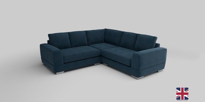 6.12.1 Buy Clayton Medium Corner Sofa - Universal Ripple Chenille Dark Blue Large Square Angle - Chrome Metal from the Next UK online shop Click here to use our accessible website