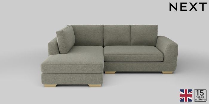 6.12.1 Buy Clayton Small Corner Chaise - Left Hand Chunky Marl Light Olive Green Large Square Angle - Brushed Brass from the Next UK online shop Click here to use our accessible website