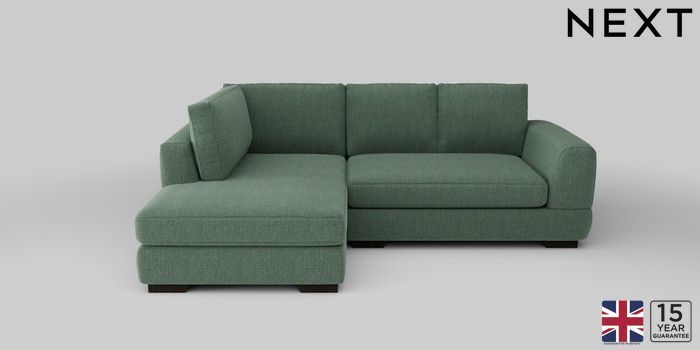 6.12.13 Buy Clayton Small Corner Chaise - Left Hand Chunky Texture Mid Forest Green Large Square Angle - Dark from the Next UK online shop Click here to use our accessible website