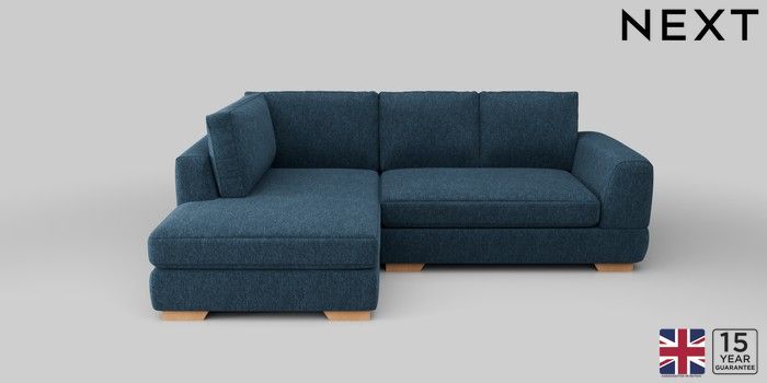 6.12.1 Buy Clayton Small Corner Chaise - Left Hand Cotswold Chenille Dark Blue Large Square Angle - Light from the Next UK online shop Click here to use our accessible website