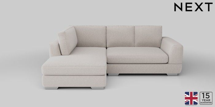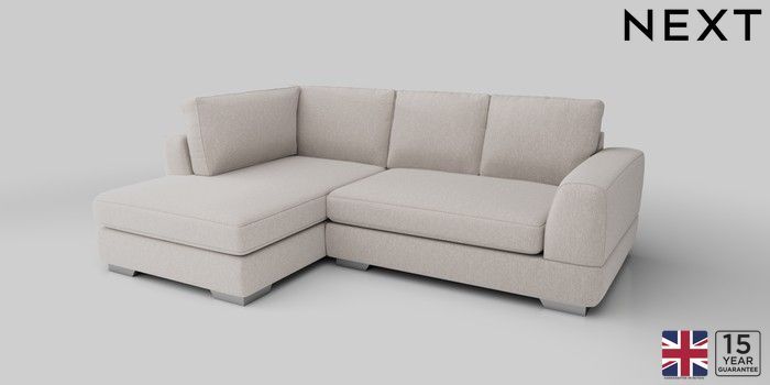 6.12.1 Buy Clayton Small Corner Chaise - Left Hand Cotswold Chenille Oyster Large Square Angle - Chrome Metal from the Next UK online shop Click here to use our accessible website