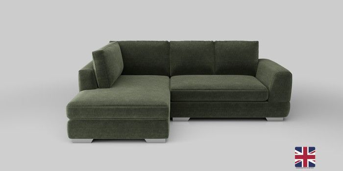 7.0.3 Buy Clayton Small Corner Chaise - Left Hand Luxe Chenille Mid Green Large Square Angle - Chrome Metal from the Next UK online shop Click here to use our accessible website