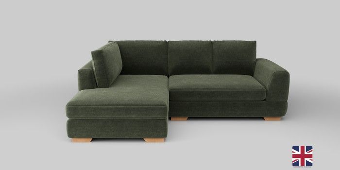 7.0.3 Buy Clayton Small Corner Chaise - Left Hand Luxe Chenille Mid Green Large Square Angle - Light from the Next UK online shop Click here to use our accessible website