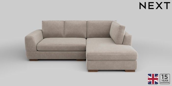 6.12.1 Buy Clayton Small Corner Chaise - Right Hand Boucle Chenille Light Natural Large Square Angle - Mid from the Next UK online shop Click here to use our accessible website