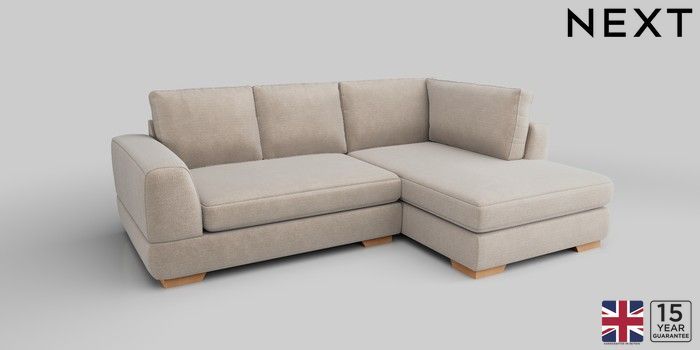 6.12.1 Buy Clayton Small Corner Chaise - Right Hand Boucle Chenille Oyster Large Square Angle - Light from the Next UK online shop Click here to use our accessible website