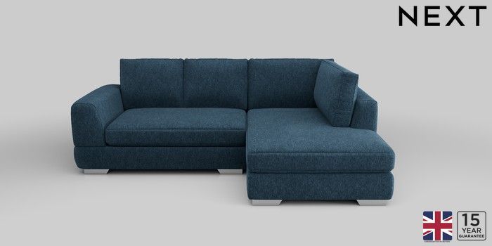 6.12.1 Buy Clayton Small Corner Chaise - Right Hand Cotswold Chenille Dark Blue Large Square Angle - Chrome Metal from the Next UK online shop Click here to use our accessible website