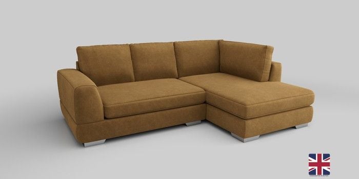 6.12.1 Buy Clayton Small Corner Chaise - Right Hand Luxe Chenille Honey Yellow Large Square Angle - Chrome Metal from the Next UK online shop Click here to use our accessible website