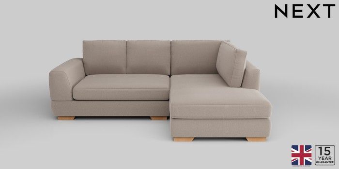 6.12.13 Buy Clayton Small Corner Chaise - Right Hand Relaxed Linen Look Mid Natural Large Square Angle - Light from the Next UK online shop Click here to use our accessible website