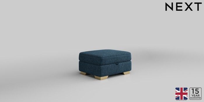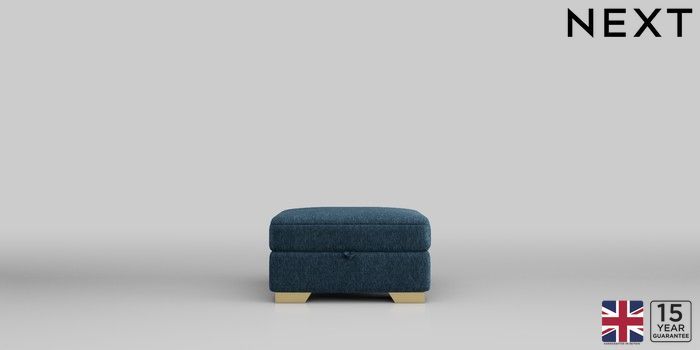 6.12.1 Buy Clayton Storage Footstool Cotswold Chenille Dark Blue Square Angle - Brushed Brass from the Next UK online shop Click here to use our accessible website