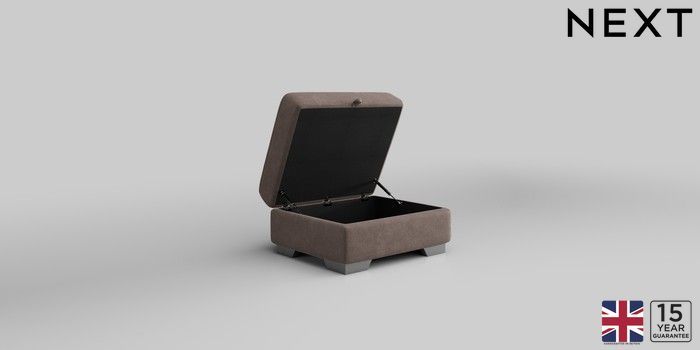 6.12.1 Buy Clayton Storage Footstool Luxe Chenille Mink Brown Square Angle - Gunmetal from the Next UK online shop Click here to use our accessible website
