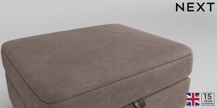 6.12.1 Buy Clayton Storage Footstool Luxe Chenille Mink Brown Square Angle - Mid from the Next UK online shop Click here to use our accessible website