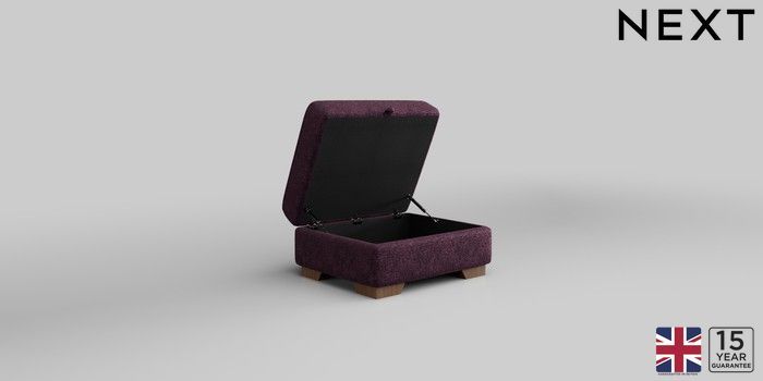 6.12.1 Buy Clayton Storage Footstool Plush Chenille Dark Plum Purple Square Angle - Mid from the Next UK online shop Click here to use our accessible website