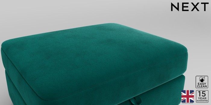 6.12.1 Buy Clayton Storage Footstool Plush Velvet Easy Clean Juniper Green Square Angle - Gunmetal from the Next UK online shop Click here to use our accessible website