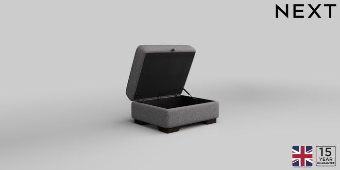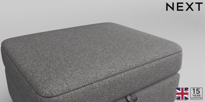6.12.1 Buy Clayton Storage Footstool Studio Chenille Mid Grey Square Angle - Dark from the Next UK online shop Click here to use our accessible website