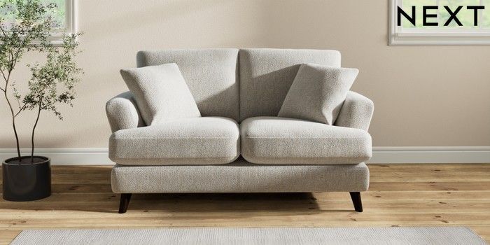 7.2.6 Buy Conway Relaxed Sit 2 Seater Small Sofa Multi Weave Light Blue Low Retro Tapered - Dark from the Next UK online shop Click here to use our accessible website