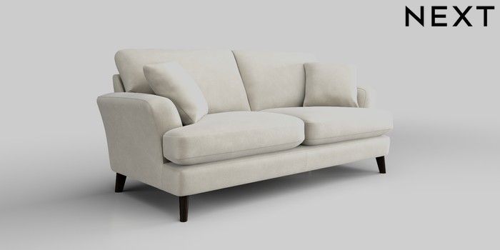 7.0.3 Buy Conway Relaxed Sit 3 Seater Small Sofa Luxe Chenille Oyster Low Retro Tapered - Dark from the Next UK online shop Click here to use our accessible website