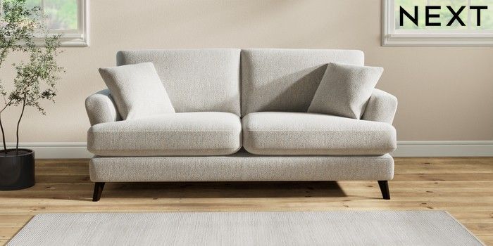 7.2.6 Buy Conway Relaxed Sit 3 Seater Small Sofa Multi Weave Light Blue Low Retro Tapered - Dark from the Next UK online shop Click here to use our accessible website