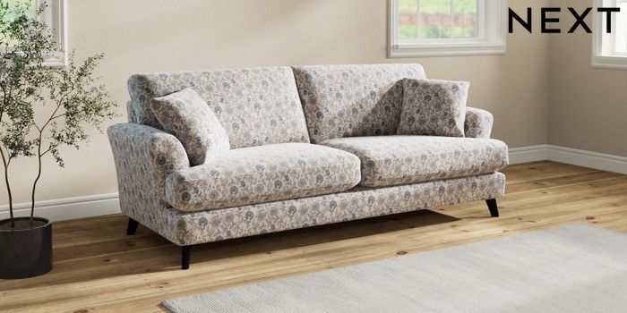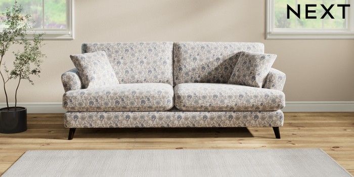 7.3.1 Buy Conway Relaxed Sit 3 Seater Sofa Relaxed Linen Look Print Woodblock Floral Blue Low Retro Tapered - Dark from the Next UK online shop