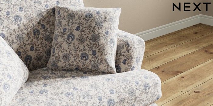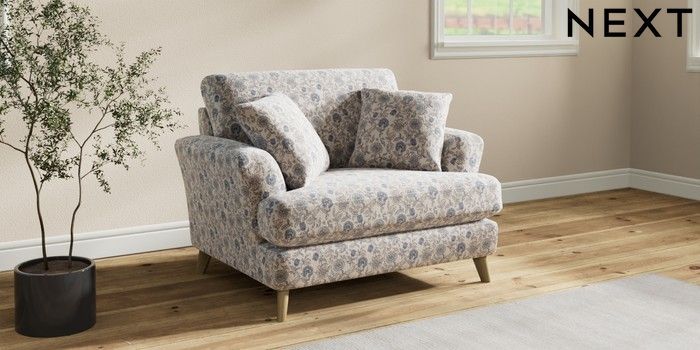 7.3.1 Buy Conway Relaxed Sit Snuggle Relaxed Linen Look Print Woodblock Floral Blue Low Retro Tapered - Light from the Next UK online shop Click here to use our accessible website