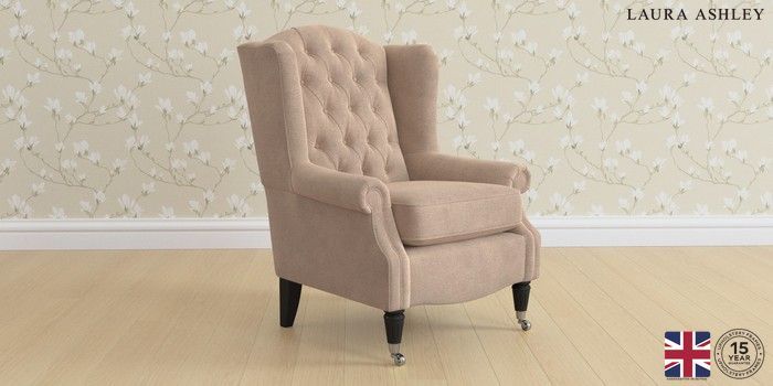 6.12.1 Buy Enderby Buttoned by Laura Ashley Armchair Ailsworth Mink Natural Unique Chrome Castor - Black from the Next UK online shop Click here to use our accessible website