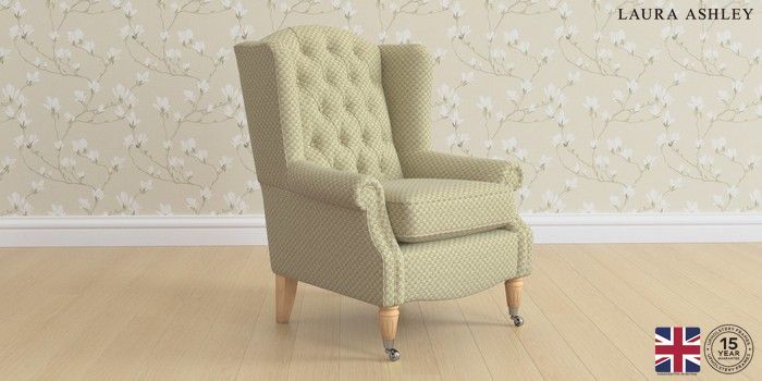 6.12.1 Buy Enderby Buttoned by Laura Ashley Armchair Chequers Hedgerow Green Unique Chrome Castor - Light Oak from the Next UK online shop Click here to use our accessible website