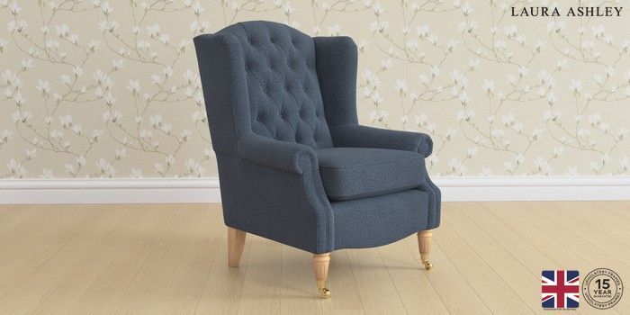 6.12.1 Buy Enderby Buttoned by Laura Ashley Armchair Lundar Chenille Navy Blue Unique Brass Castor - Light Oak from the Next UK online shop Click here to use our accessible website