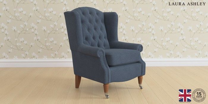 6.12.1 Buy Enderby Buttoned by Laura Ashley Armchair Lundar Chenille Navy Blue Unique Chrome Castor - Teak from the Next UK online shop Click here to use our accessible website