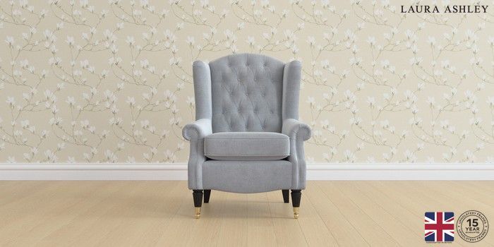 6.12.1 Buy Enderby Buttoned by Laura Ashley Armchair Peyton Powder Blue Unique Brass Castor - Black from the Next UK online shop Click here to use our accessible website