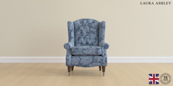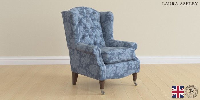 6.12.1 Buy Enderby Buttoned by Laura Ashley Armchair Tamara Dusky Seaspray Blue Unique Chrome Castor - Chestnut from the Next UK online shop Click here to use our accessible website
