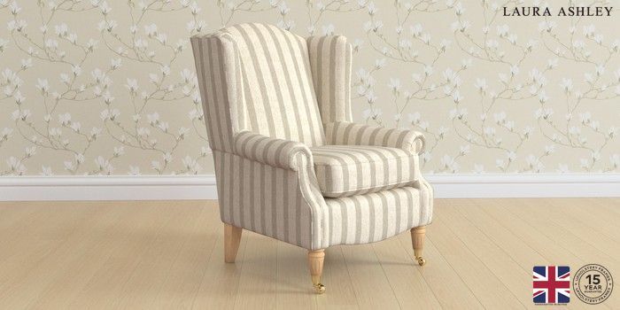 6.12.1 Buy Enderby by Laura Ashley Armchair Kinsham Stripe Natural Unique Brass Castor - Light Oak from the Next UK online shop Click here to use our accessible website