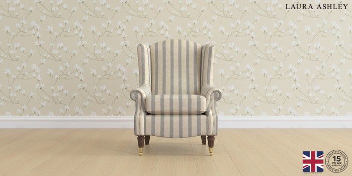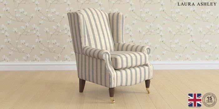 6.12.1 Buy Enderby by Laura Ashley Armchair Kinsham Stripe Seaspray Blue Unique Brass Castor - Chestnut from the Next UK online shop Click here to use our accessible website