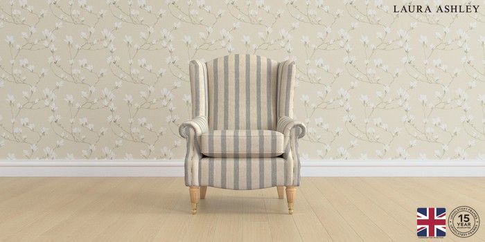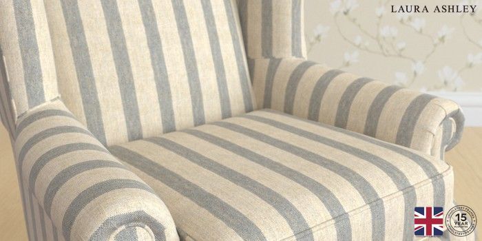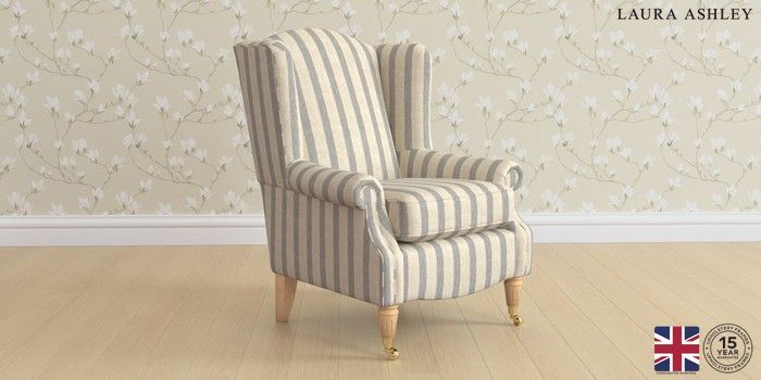 6.12.1 Buy Enderby by Laura Ashley Armchair Kinsham Stripe Seaspray Blue Unique Brass Castor - Light Oak from the Next UK online shop Click here to use our accessible website