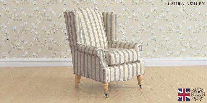 6.12.1 Buy Enderby by Laura Ashley Armchair Kinsham Stripe Seaspray Blue Unique Chrome Castor - Light Oak from the Next UK online shop Click here to use our accessible website