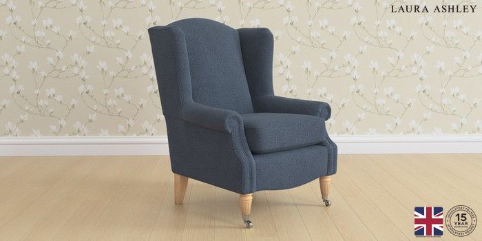 6.12.1 Buy Enderby by Laura Ashley Armchair Lundar Chenille Navy Blue Unique Chrome Castor - Light Oak from the Next UK online shop Click here to use our accessible website