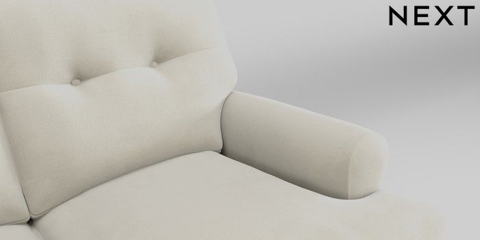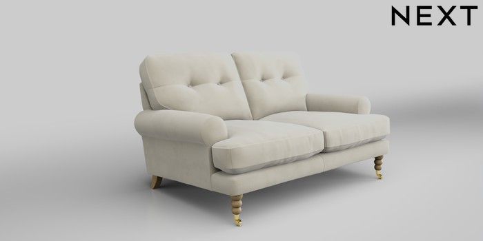 7.0.3 Buy Erin Buttoned Back Deep Relaxed Sit 2 Seater Small Sofa Luxe Chenille Oyster High Classic Turned Brass Castor - Light from the Next UK online shop Click here to use our accessible website