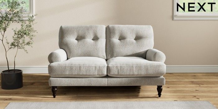 7.2.6 Buy Erin Buttoned Back Deep Relaxed Sit 2 Seater Small Sofa Multi Weave Light Blue High Classic Turned - Dark from the Next UK online shop Click here to use our accessible website