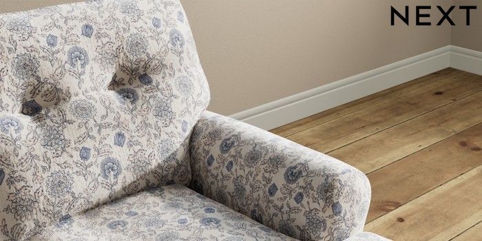 7.3.1 Buy Erin Buttoned Back Deep Relaxed Sit 2 Seater Small Sofa Relaxed Linen Look Print Woodblock Floral Blue High Classic Turned - Mid from the Next UK online shop Click here to use our accessible website