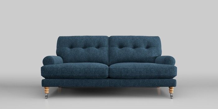 6.12.1 Buy Erin Buttoned Back Deep Relaxed Sit 3 Seater Small Sofa Cotswold Chenille Dark Blue High Classic Turned Chrome Castor - Light from the Next UK online shop Click here to use our accessible website