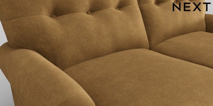 7.0.3 Buy Erin Buttoned Back Deep Relaxed Sit 3 Seater Small Sofa Luxe Chenille Honey Yellow High Classic Turned Brass Castor - Light from the Next UK online shop Click here to use our accessible website