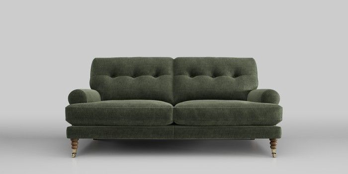 7.0.3 Buy Erin Buttoned Back Deep Relaxed Sit 3 Seater Small Sofa Luxe Chenille Mid Green High Classic Turned Brass Castor - Dark from the Next UK online shop Click here to use our accessible website